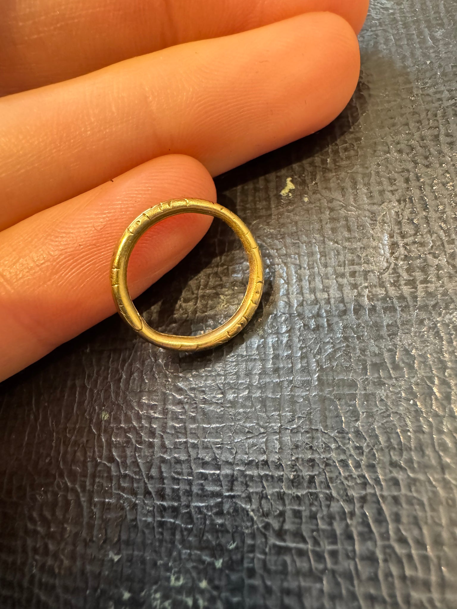 Condition: Very good antique condition - very little separation of ring. Engraving has worn slightly.