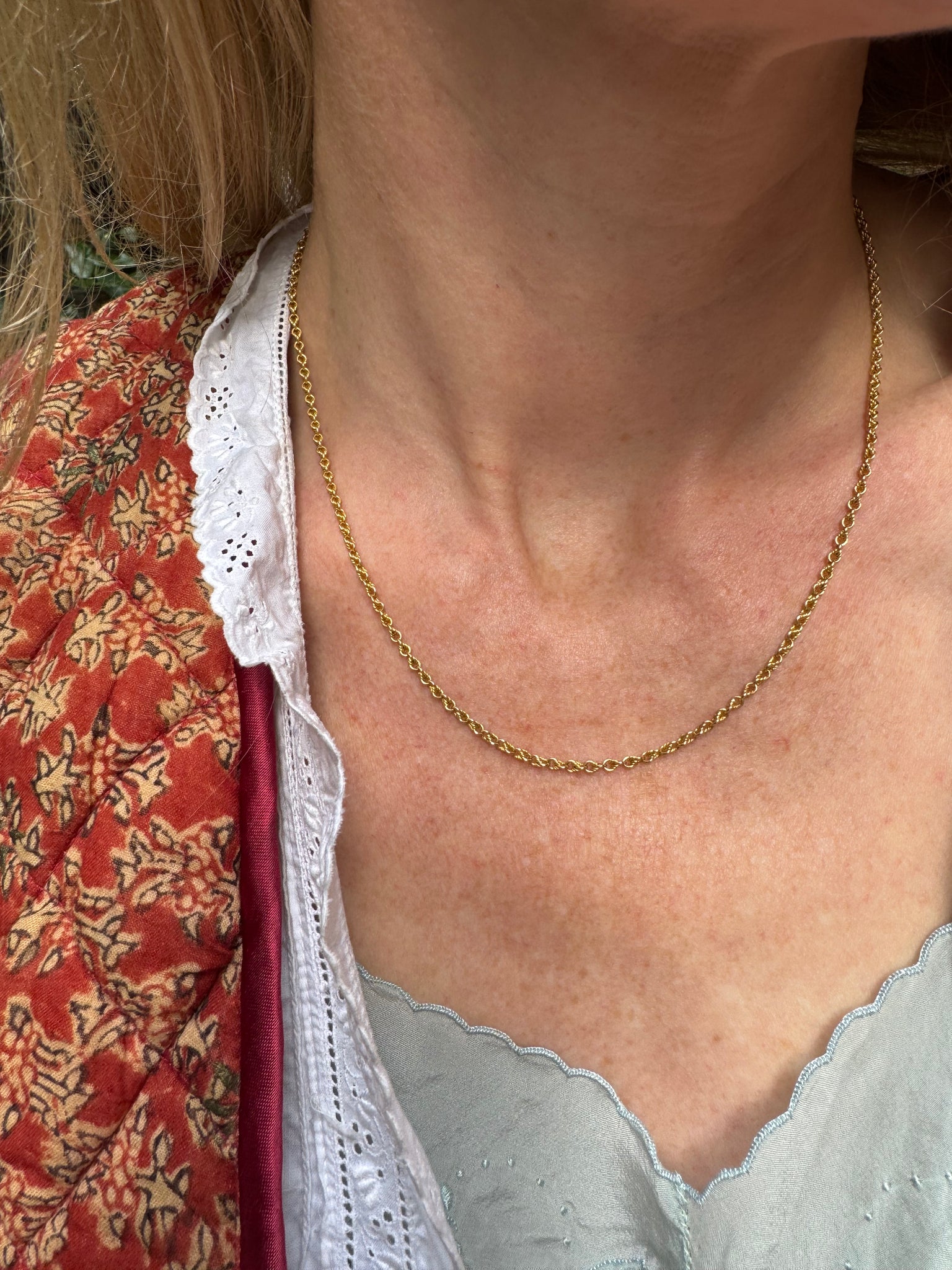 This 15ct lovers knot chain is just about perfect. The gold is a deep, beautiful hue, and the knots make this a proper necklace, even when it is worn alone. The link is chunky enough to hold larger pendants. The piece is in excellent condition and is ready for years of everyday wear.