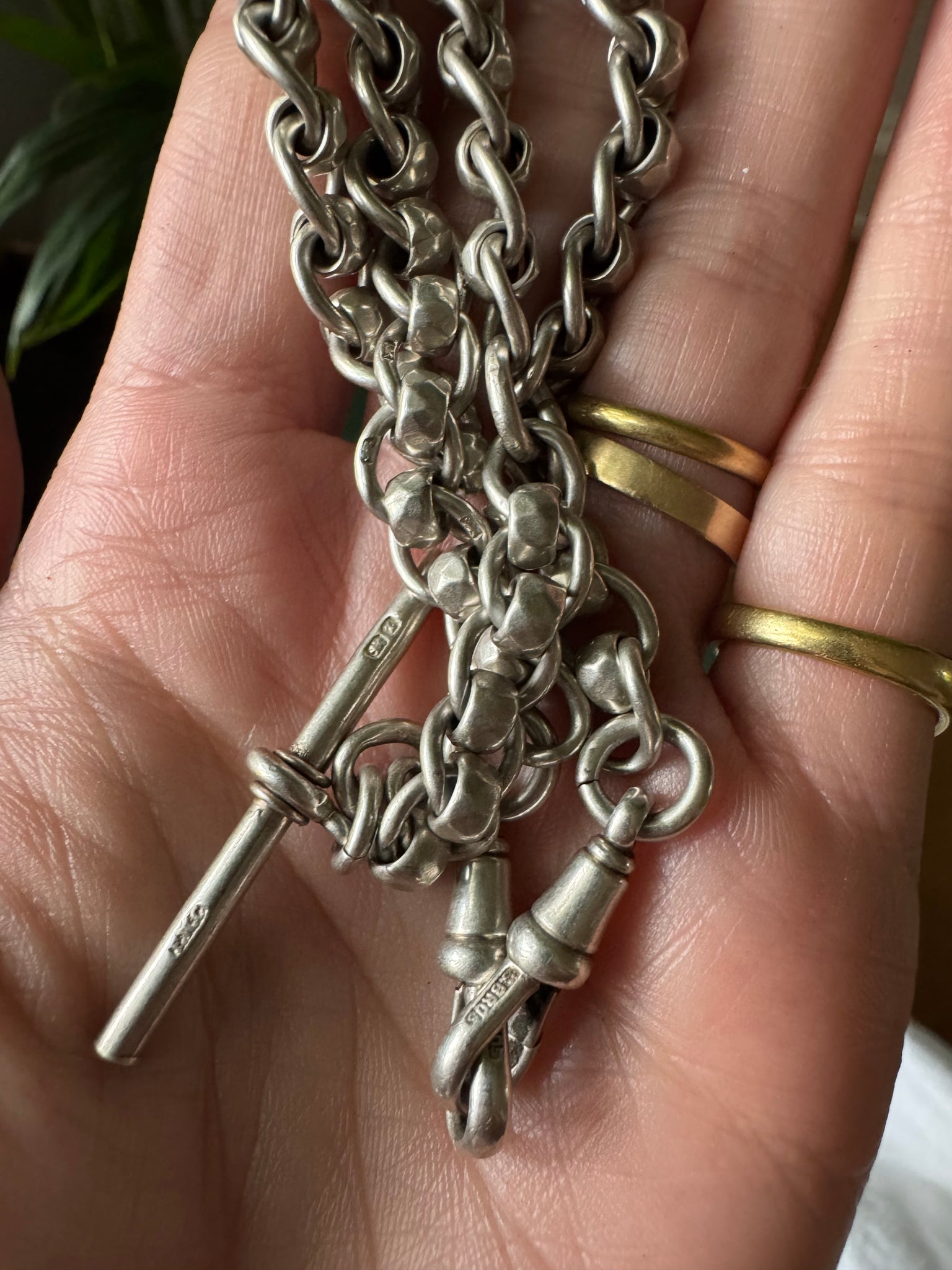 As a jewellery fidgeter, I can attest that there is nothing more soothing than a rollerball chain. I love the length of this one, and the exaggerated t-bar drop. Both the t-bars and the dog clips swivel for extra fidgeting fun! The chain is in excellent condition with no thinning to the links.